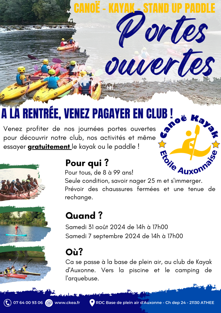 Venez profiter de nos journées portes ouvertes pour découvrir notre club, nos activités et même essayer gratuitement le kayak ou le paddle !
