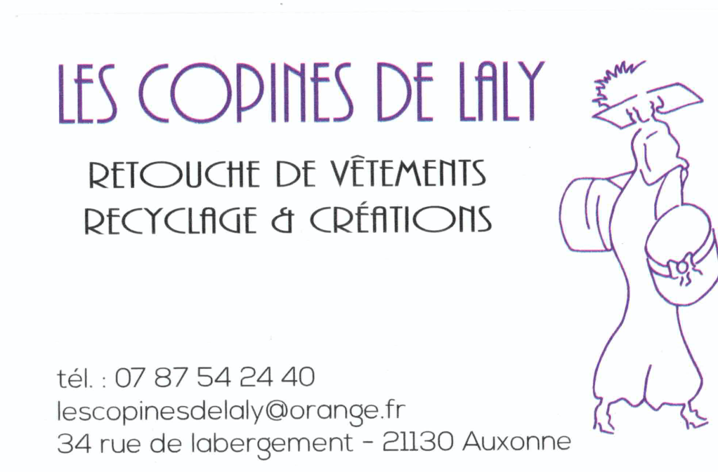 Les copines de Laly : Passionnée par son métier depuis 30 ans, elle vous propose un service de couture, retouche, réparation de vêtements et idées cadeaux confectionnées principalement à partir de matières recyclées. Plus d’infos sur Facebook